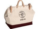 409-5102-12 Features: -Heavy-duty No. 8 natural canvas.-Steel-frame mouth with hinge for rugged use.-Non-scratch studs on base protect against wear.-Rivet-reinforced for durability.-Stitched and riveted leather handles for comfort and strength.-Two retaining straps with buckles provide secure closure.-Moisture-resistant, vinyl bottom, and lower sides.-Retro-fit bags with shoulder strap kit (Cat. No. 5102S).-Bottom and 8'' (203 mm) of lower sides are covered with moisture-resistant vinyl.-Harness-leather handles with two retaining straps and buckles.-Heavy-duty No.6 natural canvas.-Double-layer canvas bottom.-Reinforced, riveted web handles.-No. of Compartments: 1.-Material: Canvas.-Type: Tool Bag.-Price is for 1 Each.